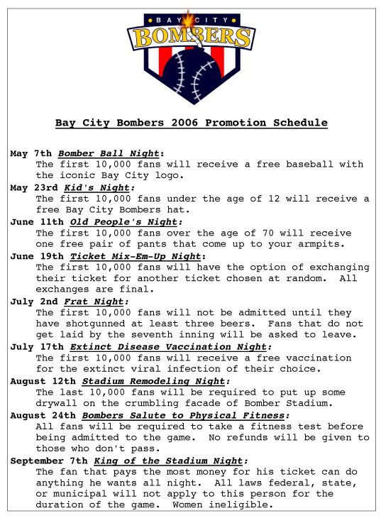 The Bay City Bomber's 2006 Promotion Schedule